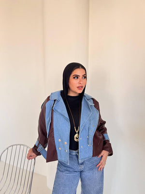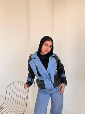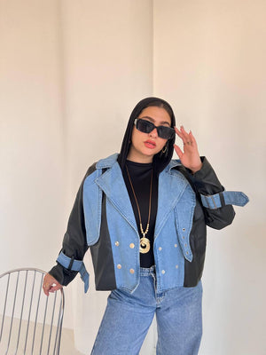 Crafted from a unique mix of premium faux leather and durable denim, this jacket delivers structure, contrast, and standout appeal.