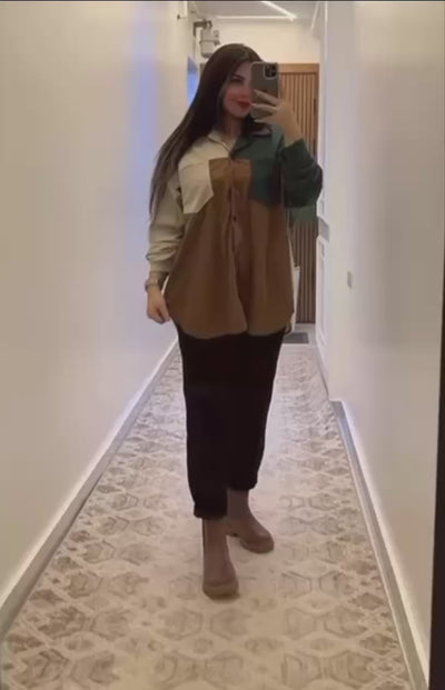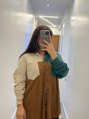Elevate your casual look with our Ribbed Velvet Color Block Shirt, combining soft luxury with a trendy design.